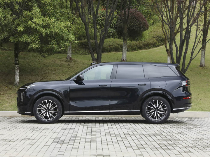 再来看车身侧面部分,侧身采用悬浮式车顶设计,黑色饰条包裹的窗线与隐藏式门把手降低风阻系数。贯穿式腰线从前翼子板延伸至尾灯,配合20英寸低风阻轮毂(米其林PRIMACY4轮胎),营造出中大型SUV的稳重气质。无框车门与电动门把手的设计,在实用性与年轻化之间取得精妙平衡。车身尺寸方面,新车的长宽高分别为4837x1920x1690毫米,轴距2905毫米。
